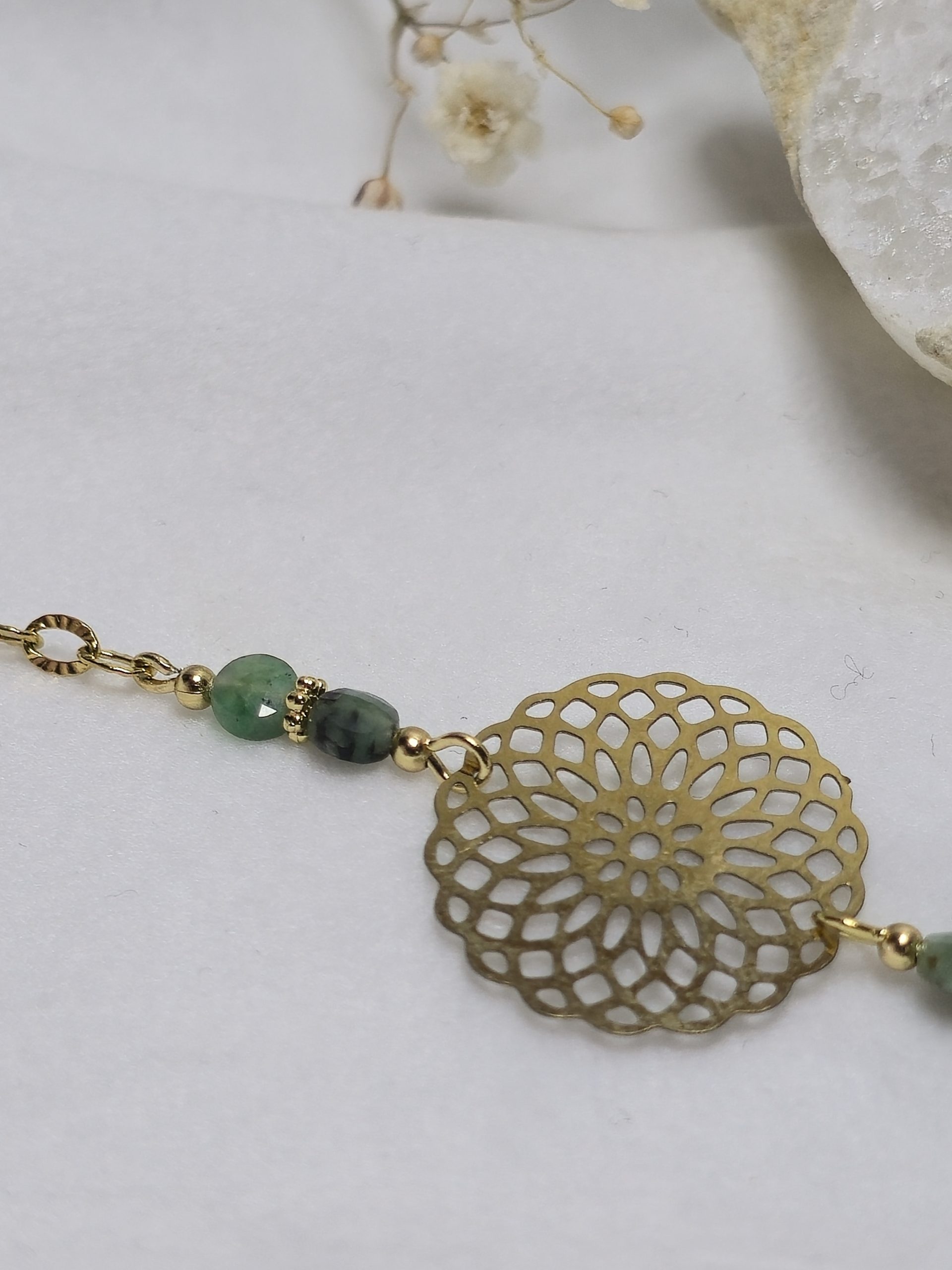 Bracelet fin en acier inoxydable doré et émeraude naturelle