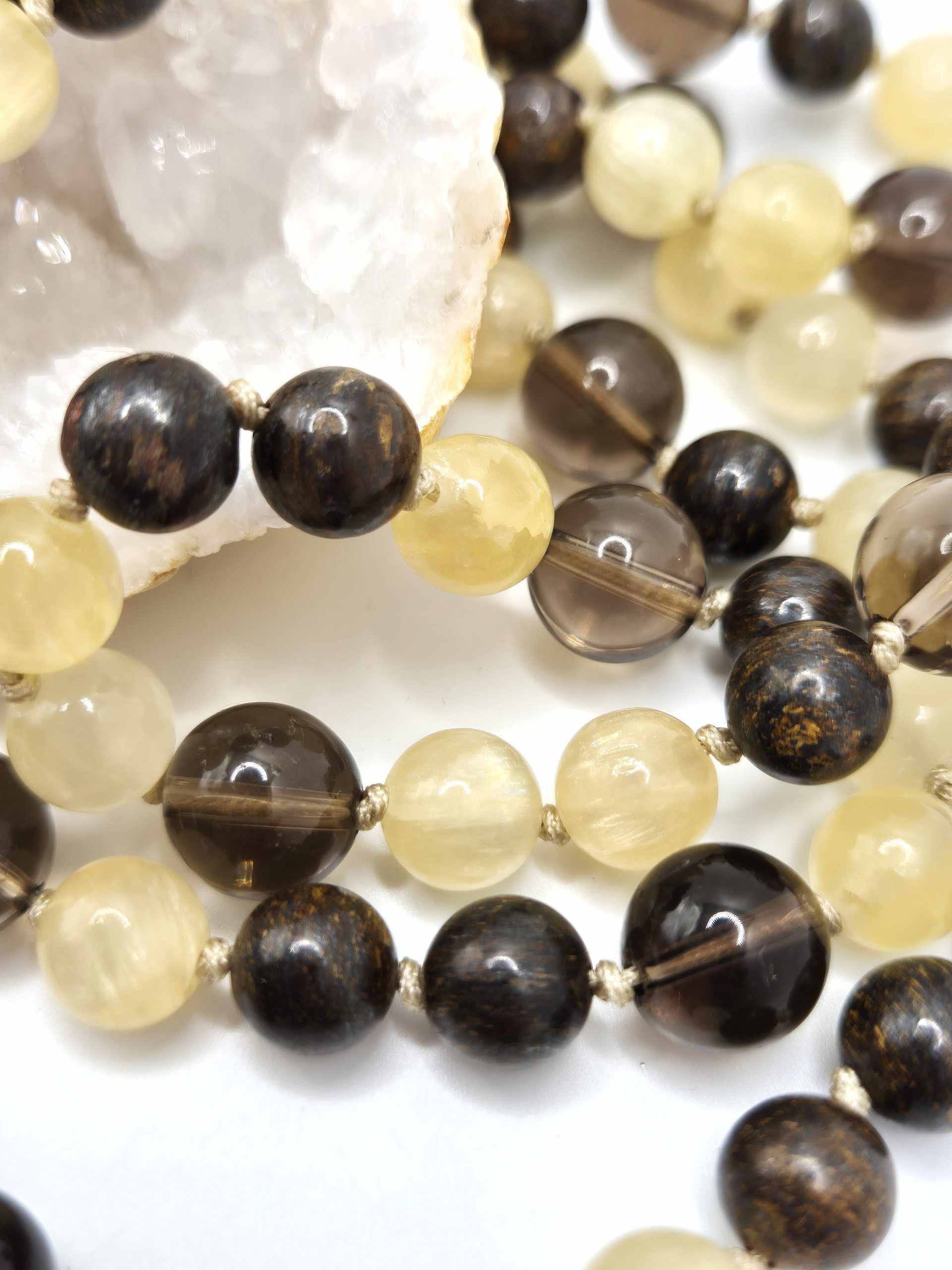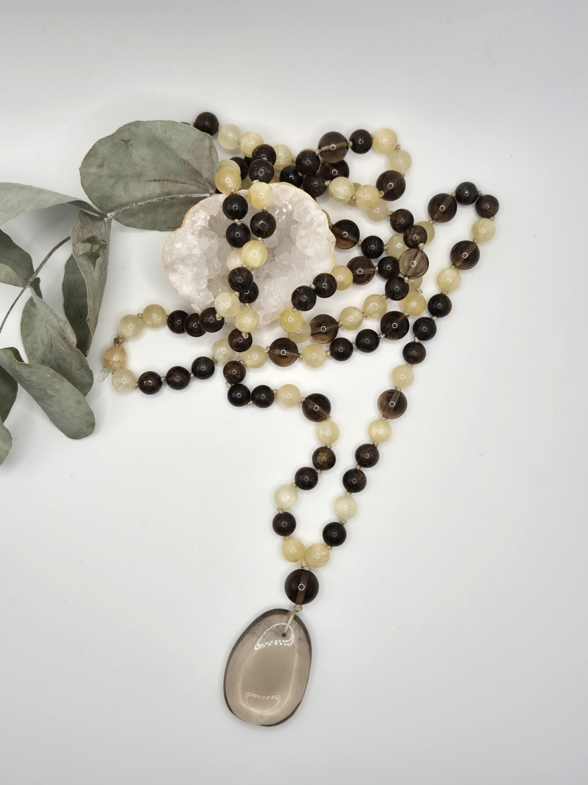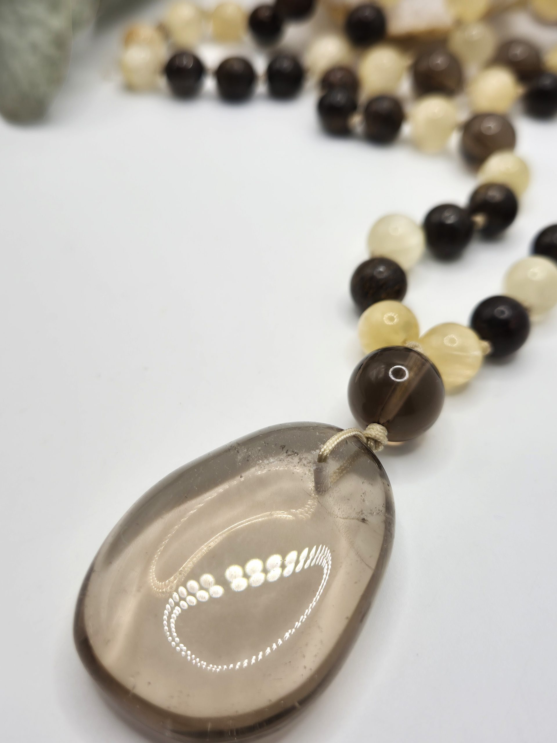 Un pendentif en Quartz Fumé poli complète ce mala.